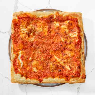 New York Style Pizza cut into 8 slices. Large (16") serves 3-4 people. Small (12") serves 2-3 people