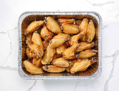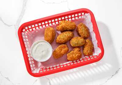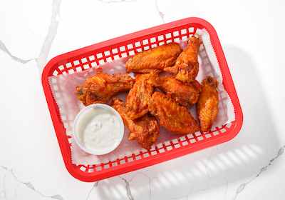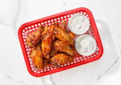 Choice of Bone-In (Unbreaded) or Bone-Less (Breaded) Jumbo Wings Served in Your Choice of Spicy Buffalo, Mild, BBQ, Sweet Chili, or Teriyaki Sauces. Includes Chunky Blue Cheese Dressing.